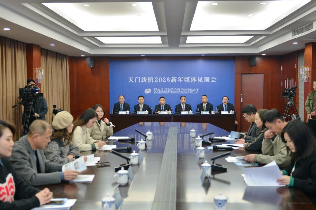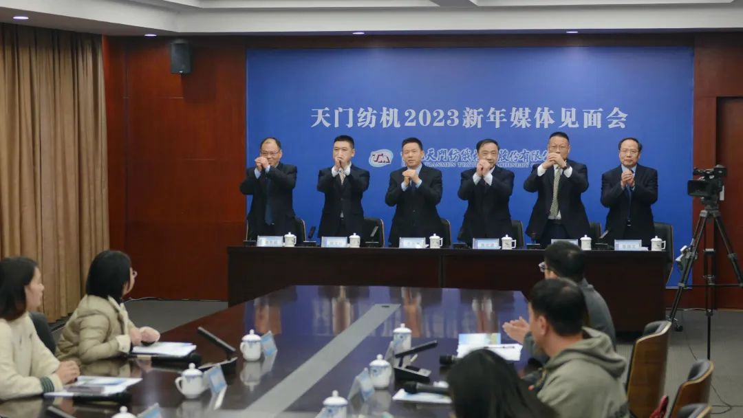 2023年1月10日上午10:00,冬日和煦,陽光明媚。湖北天門紡織機械股份有限公司在天門市委宣傳部及市融媒體中心的關心和指導下,召開了主題為“交流疫情三年逆勢而為心路歷程,探討后疫情時代企業(yè)發(fā)展新思路”的“2023新年媒體見面會”。