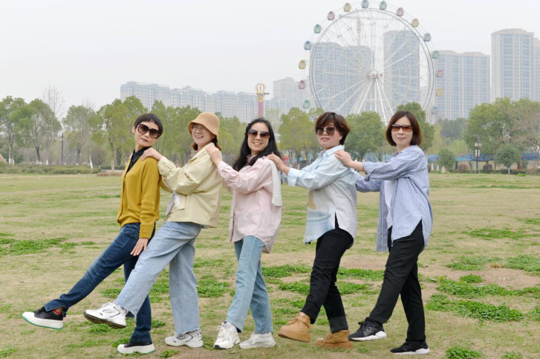 伴隨徐徐春風(fēng),“娘子軍”踏上了旅程。大巴上,大家一起玩游戲,唱車載KTV,一路洋溢著歡聲笑語,轉(zhuǎn)眼便抵達(dá)第一站——后官湖國家濕地公園。