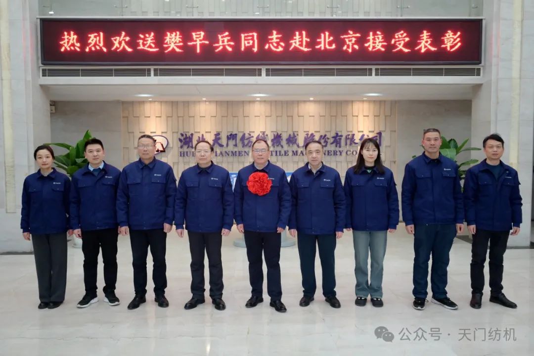 2024年1月15日上午,天門紡機(jī)部室員工齊聚科技樓大廳,歡送公司品控總監(jiān)、高級檢驗(yàn)師樊早兵同志赴京參加“2023年中國紡織人才大會”。公司總經(jīng)理焦倫進(jìn)在歡送活動中即席講話,他說,樊早兵同志被授予“2023年度新時代紡織英才”,是中紡聯(lián)對他取得的顯著成績及奉獻(xiàn)精神的充分肯定,實(shí)至名歸。他得到如此殊榮是天門紡機(jī)的驕傲,全體員工要以他為榜樣,努力工作,奮發(fā)有為,為公司高質(zhì)量發(fā)展貢獻(xiàn)應(yīng)有的力量。送行的員工敲鑼打鼓,載歌載舞,把現(xiàn)場氣氛推向高潮。
