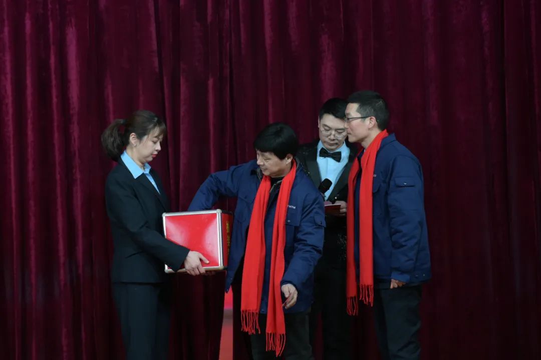 公司黨委書(shū)記魯?shù)挛男x了《關(guān)于表彰2023年度先進(jìn)單位、先進(jìn)個(gè)人的決定》,獲得榮譽(yù)的個(gè)人及單位代表紛紛登臺(tái)領(lǐng)獎(jiǎng)。