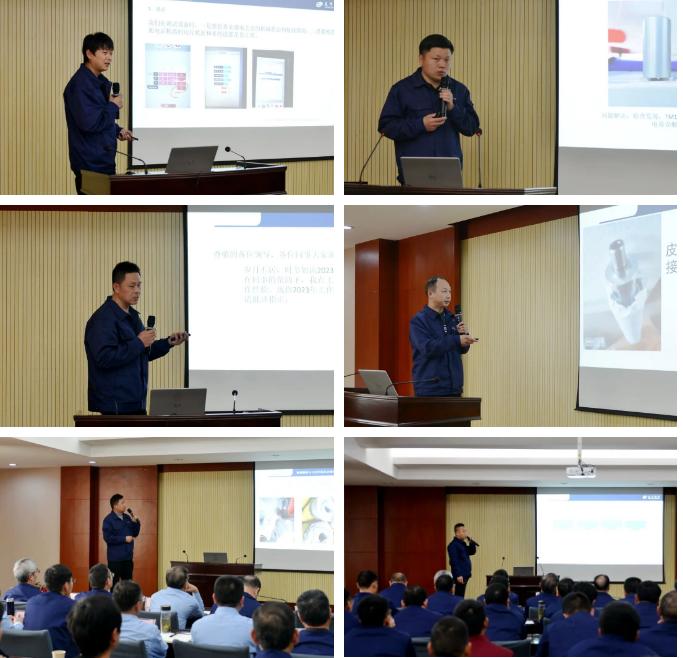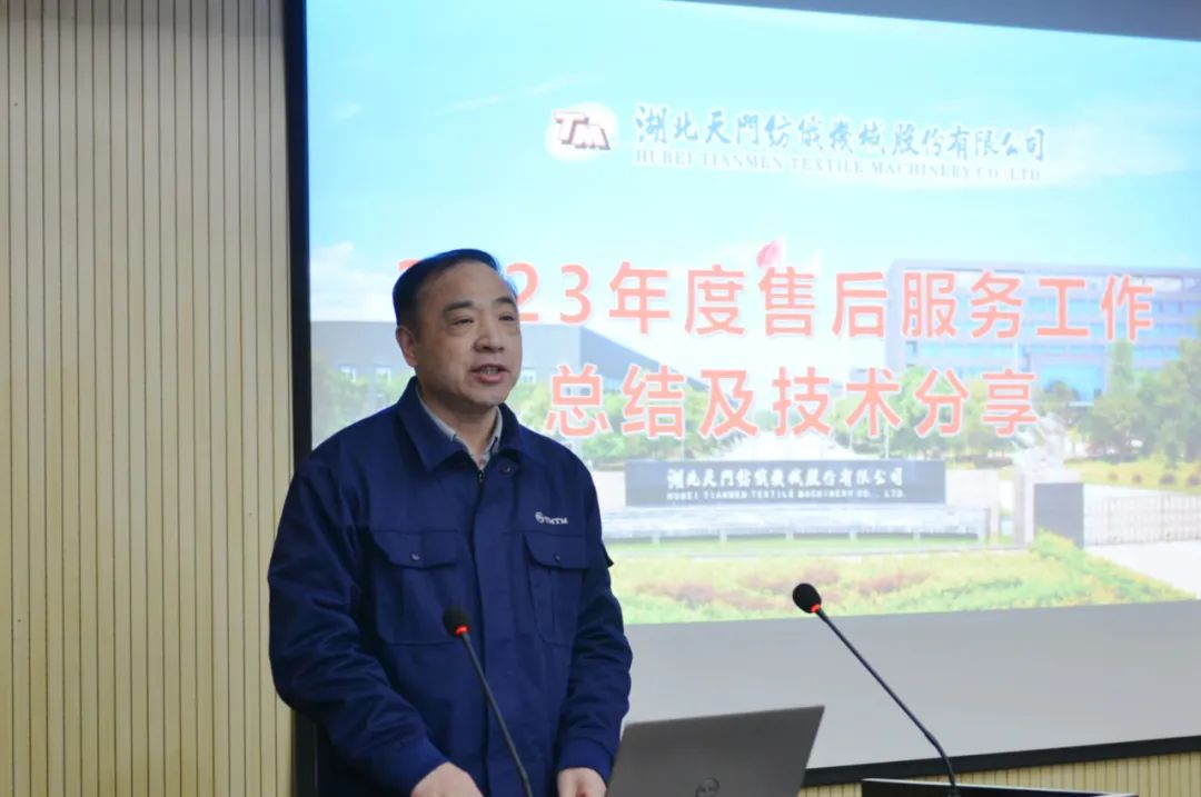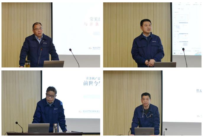 17名售后服務(wù)人員作了2023年度工作總結(jié)及技術(shù)交流;樊早兵總監(jiān)作專業(yè)知識(shí)講座;鄭強(qiáng)總工程師安排布置了T1系列并條機(jī)改進(jìn)工作事項(xiàng);楊文峰副總經(jīng)理作案例分享;于少波主任作經(jīng)驗(yàn)分享。