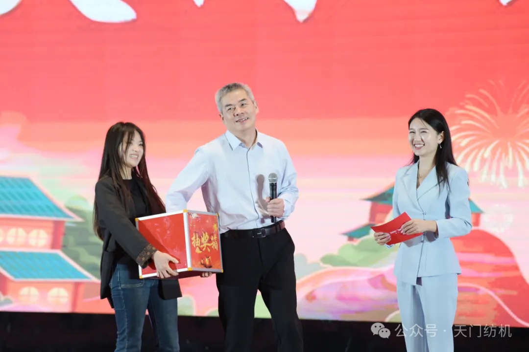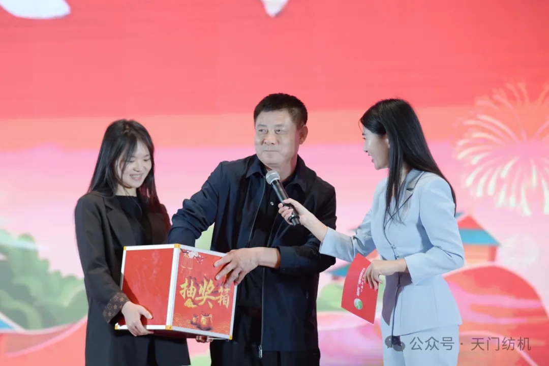 在28日的“天門紡機(jī)之夜”招待晚宴,天門紡機(jī)市場總監(jiān)周志宏、中國紗線網(wǎng)副主編孫其海分別致祝酒辭。酒香四溢之中,精彩的節(jié)目表演及抽獎(jiǎng)活動(dòng)把晚宴氣氛推向高潮。