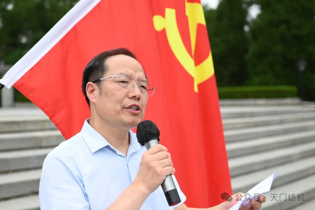 天門紡機(jī)黨委書記魯?shù)挛淖髁?ldquo;追尋紅色印記,踐行理想信念”的主旨報(bào)告。他回顧中國(guó)共產(chǎn)黨奮斗歷程時(shí)說:一百多年來,中國(guó)共產(chǎn)黨帶領(lǐng)中國(guó)人民浴血奮戰(zhàn)、篳路藍(lán)縷,從勝利走向勝利,完成了站起來到富起來再到強(qiáng)起來的偉大壯舉,實(shí)現(xiàn)了第一個(gè)百年計(jì)劃,第二個(gè)百年計(jì)劃也在如火如荼地進(jìn)行之中,以習(xí)近平總書記為核心的黨中央帶領(lǐng)全國(guó)人民以中國(guó)式現(xiàn)代化全面推進(jìn)中華民族的偉大復(fù)興。他強(qiáng)調(diào):無論歲月更迭、企業(yè)變遷,中國(guó)共產(chǎn)黨組織始終是天門紡機(jī)的政治引領(lǐng)、精神支柱、行動(dòng)指南;無論是國(guó)有企業(yè)時(shí)還是民營(yíng)企業(yè),黨員干部始終是戰(zhàn)斗堡壘、時(shí)代先鋒,在企業(yè)生產(chǎn)經(jīng)營(yíng)活動(dòng)中發(fā)揮著不可替代的作用。他希望全體黨員干部不忘初心,牢記使命,始終把企業(yè)放在心上,把工作重?fù)?dān)扛在肩上,為天門紡機(jī)高質(zhì)量發(fā)展貢獻(xiàn)應(yīng)有力量。