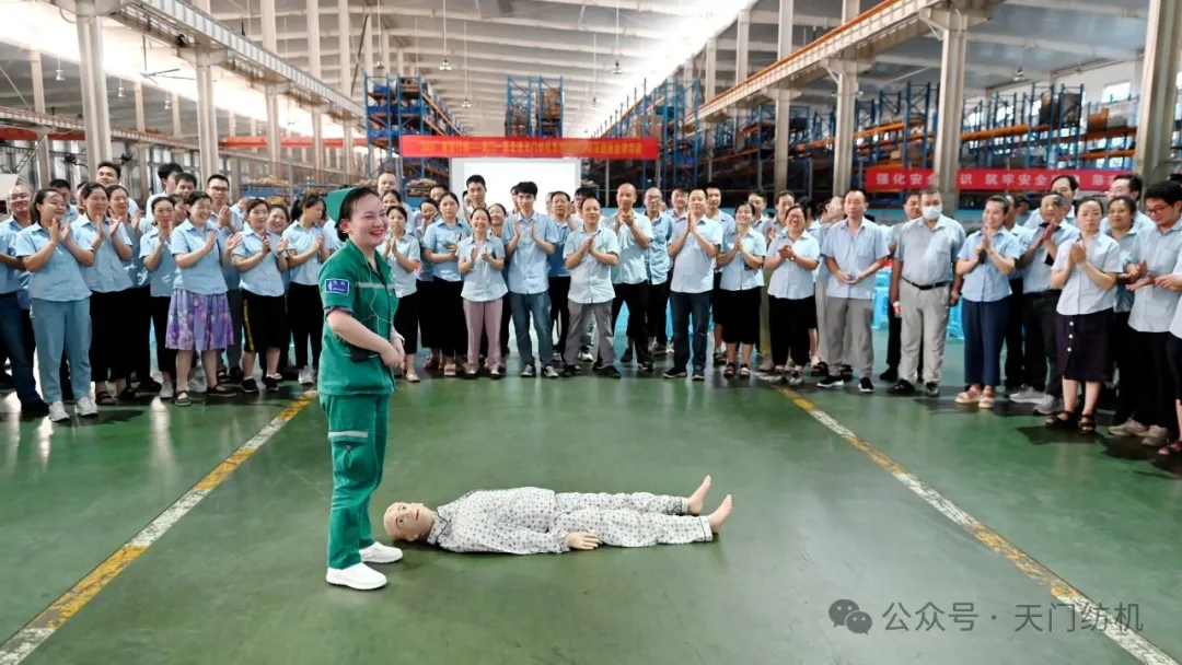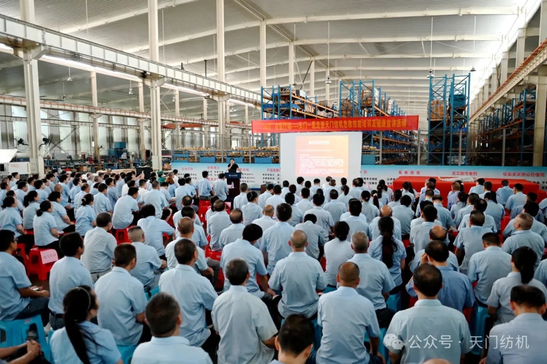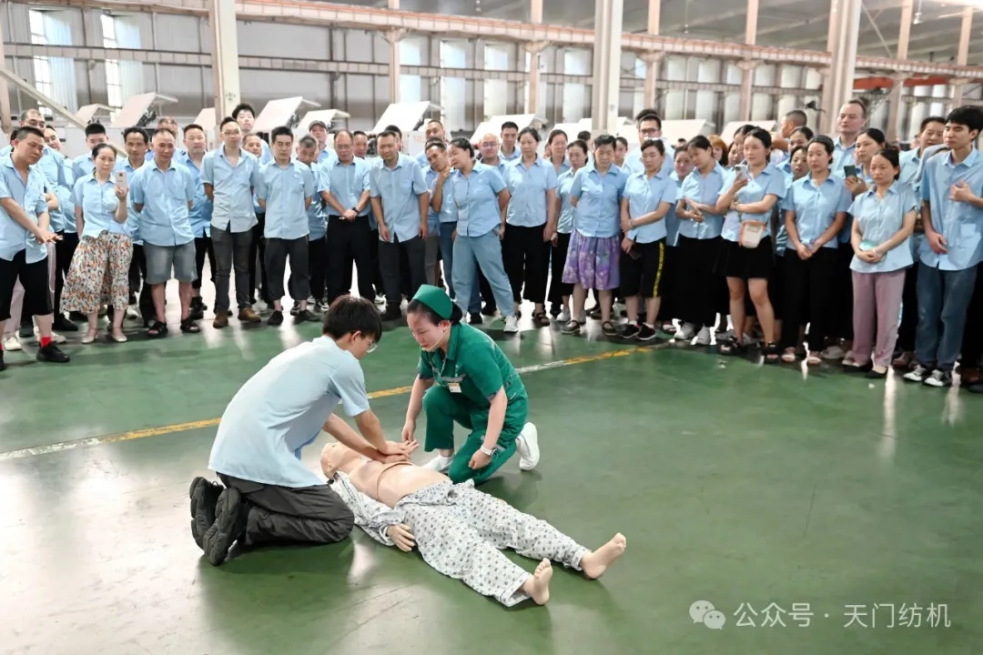 室外赤日炎炎,酷暑難當(dāng);室內(nèi)座無虛席,氣氛熱烈。2024年7月17日下午,天門紡機(jī)在生產(chǎn)現(xiàn)場(chǎng)組織了一場(chǎng)別開生面的健康知識(shí)及急救技能培訓(xùn)活動(dòng),天門市第一人民醫(yī)院的多位醫(yī)療專家應(yīng)邀來公司進(jìn)行健康知識(shí)講座和急救實(shí)操演示。
