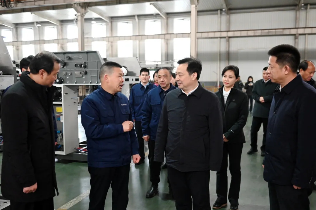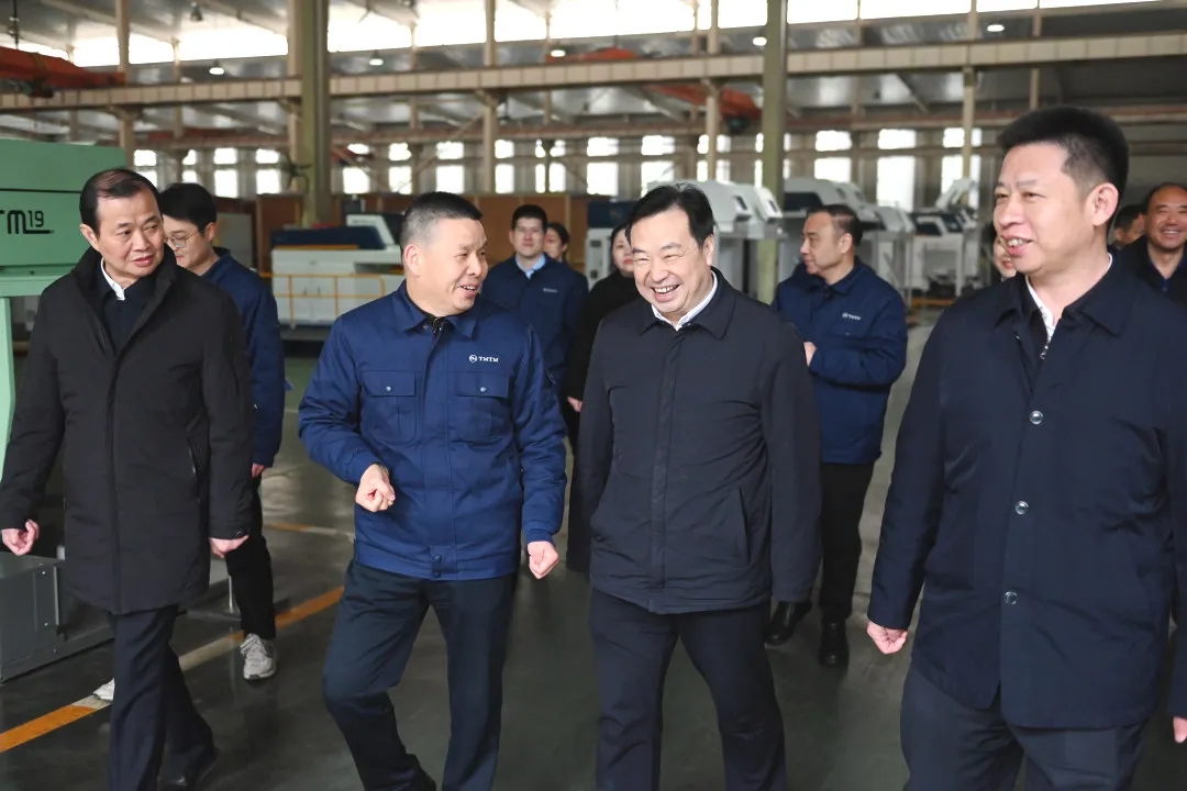 2025年3月4日上午,湖北省經(jīng)信廳黨組書記、廳長汪元程,總工程師盛章學(xué),經(jīng)濟(jì)運(yùn)行處處長王雋,裝備工業(yè)處處長王瓊,原材料工業(yè)處處長鄧忠明,綜合處二級主任科員李雷等一行到天門紡機(jī)調(diào)研。天門市委書記、市人大常委會主任紀(jì)道清,天門市委副書記、市長肖敏,天門市委常委、副市長曾令慧,天門市委常委、秘書長高文博等市領(lǐng)導(dǎo)及天門市經(jīng)信局黨組書記、局長陳明敏等部門負(fù)責(zé)人全程陪同調(diào)研。