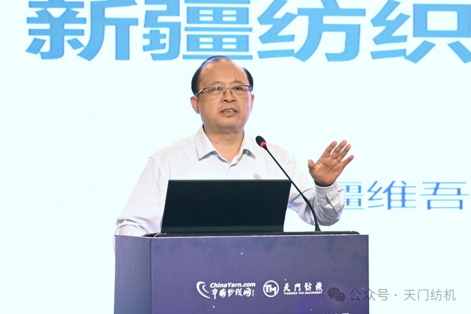 全國政協(xié)委員、新疆維吾爾自治區(qū)棉花產(chǎn)業(yè)發(fā)展領(lǐng)導(dǎo)小組辦公室主任梁勇對(duì)會(huì)議表示了祝賀,并在《新疆紡織服裝產(chǎn)業(yè)最新政策解讀》報(bào)告中闡述了“新九條”優(yōu)惠政策的設(shè)計(jì)思路與依據(jù),明確了行業(yè)發(fā)展戰(zhàn)略。他指出,新疆發(fā)展紡織產(chǎn)業(yè)具備眾多優(yōu)勢(shì),是大勢(shì)所趨。他強(qiáng)調(diào),當(dāng)前新疆紡織正處于加速增長階段,市場(chǎng)競(jìng)爭(zhēng)也會(huì)更加激烈,但是,一定要理性對(duì)待競(jìng)爭(zhēng),堅(jiān)決抵制“內(nèi)卷”。